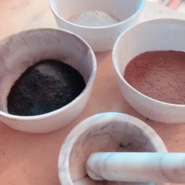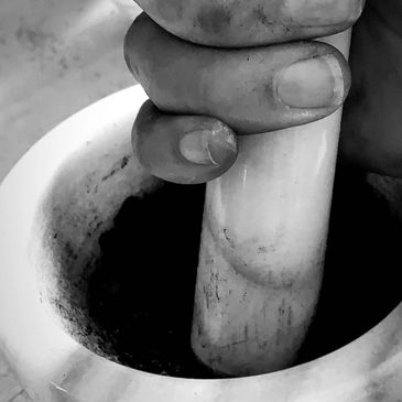 The next morning once the ashes have cooled, I collect them and grind them down into a fine powder, using a mortar and pestle.